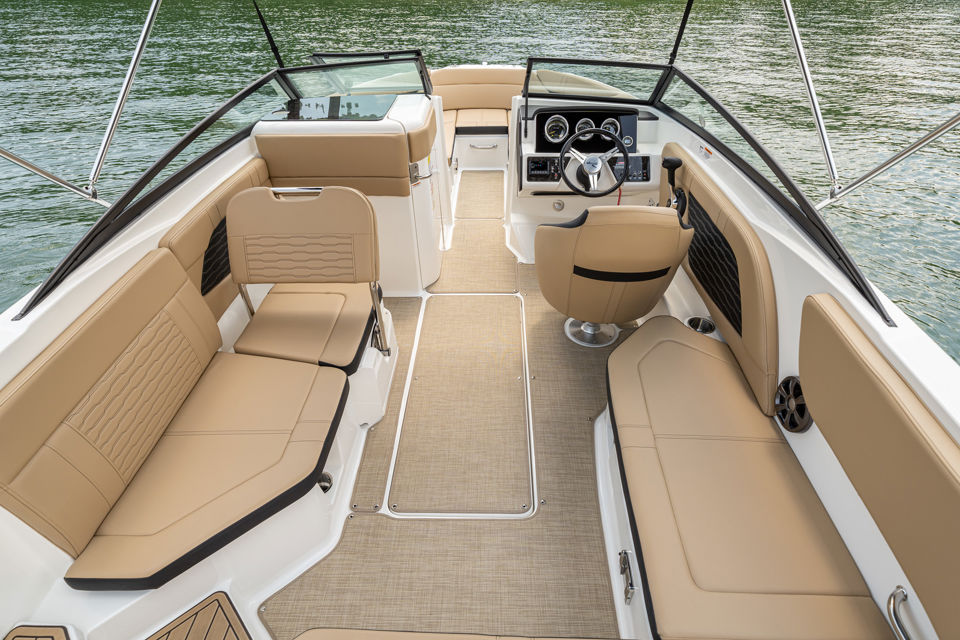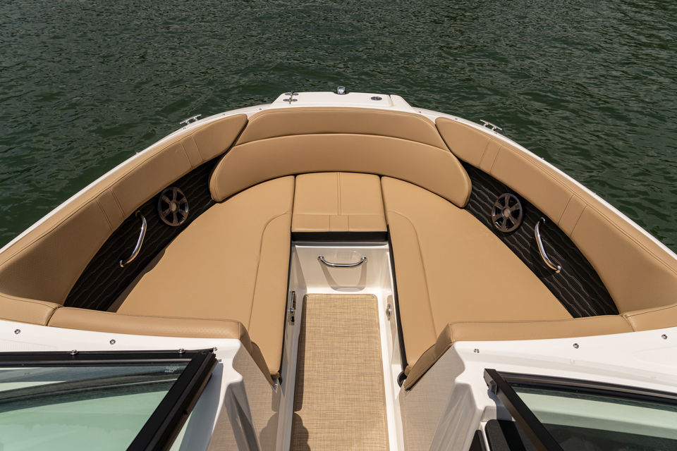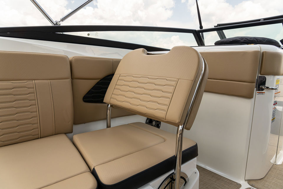 With roomy seating from bow to stern, a three-position port lounger, there’s plenty of space for the whole crew to relax or enjoy watersports. The integrated swim platform with submersible step makes diving, swimming, or gearing up a breeze.