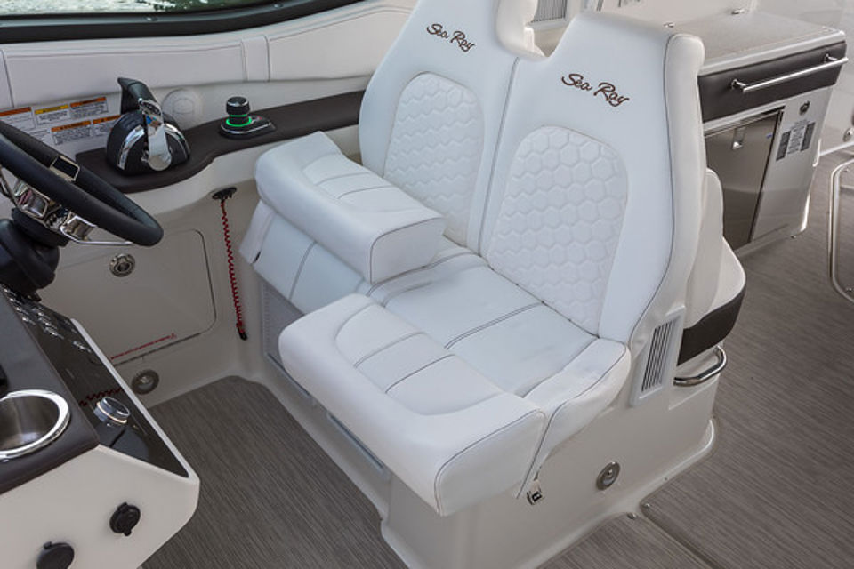 Step aboard the Sea Ray Sundancer 320, a yacht designed for those who demand more from life on the water. Powered by twin Mercury 400 HP V10 Verado outboards with joystick control and electric steering, this vessel delivers exhilarating performance combined with effortless maneuverability.